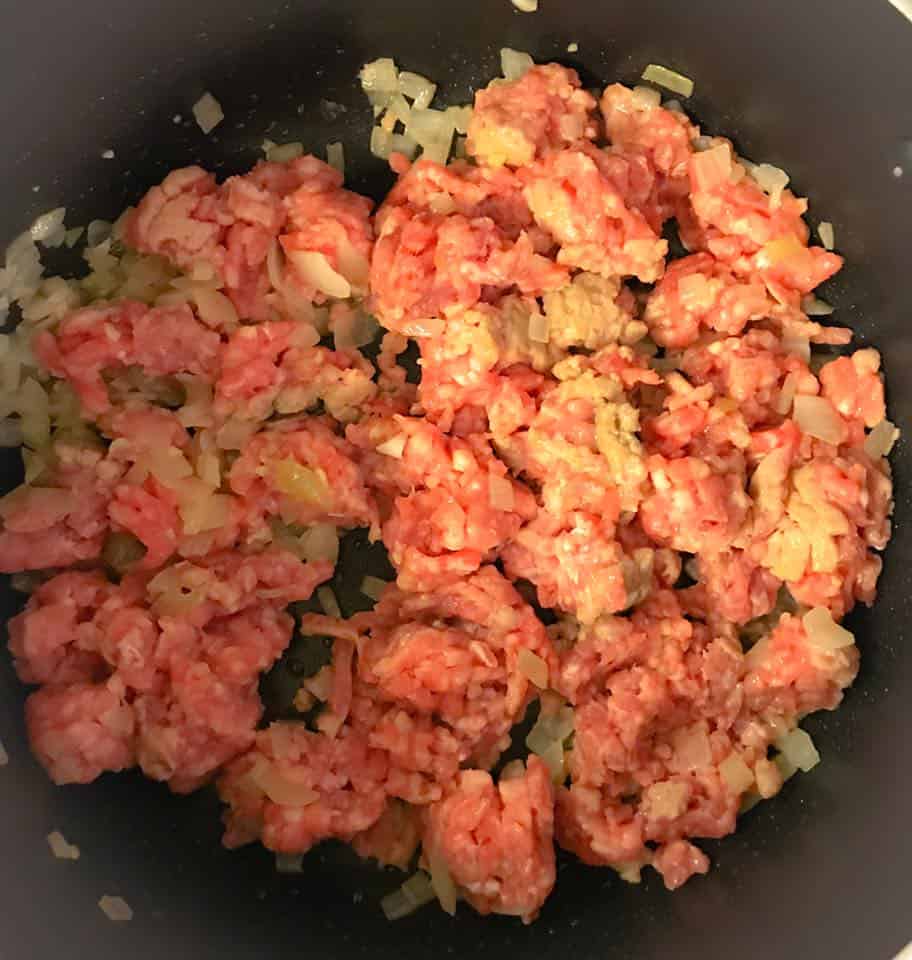 - Add the ground pork, ginger and sriracha. Saute until the pork is cooked through. Add salt and pepper to taste.