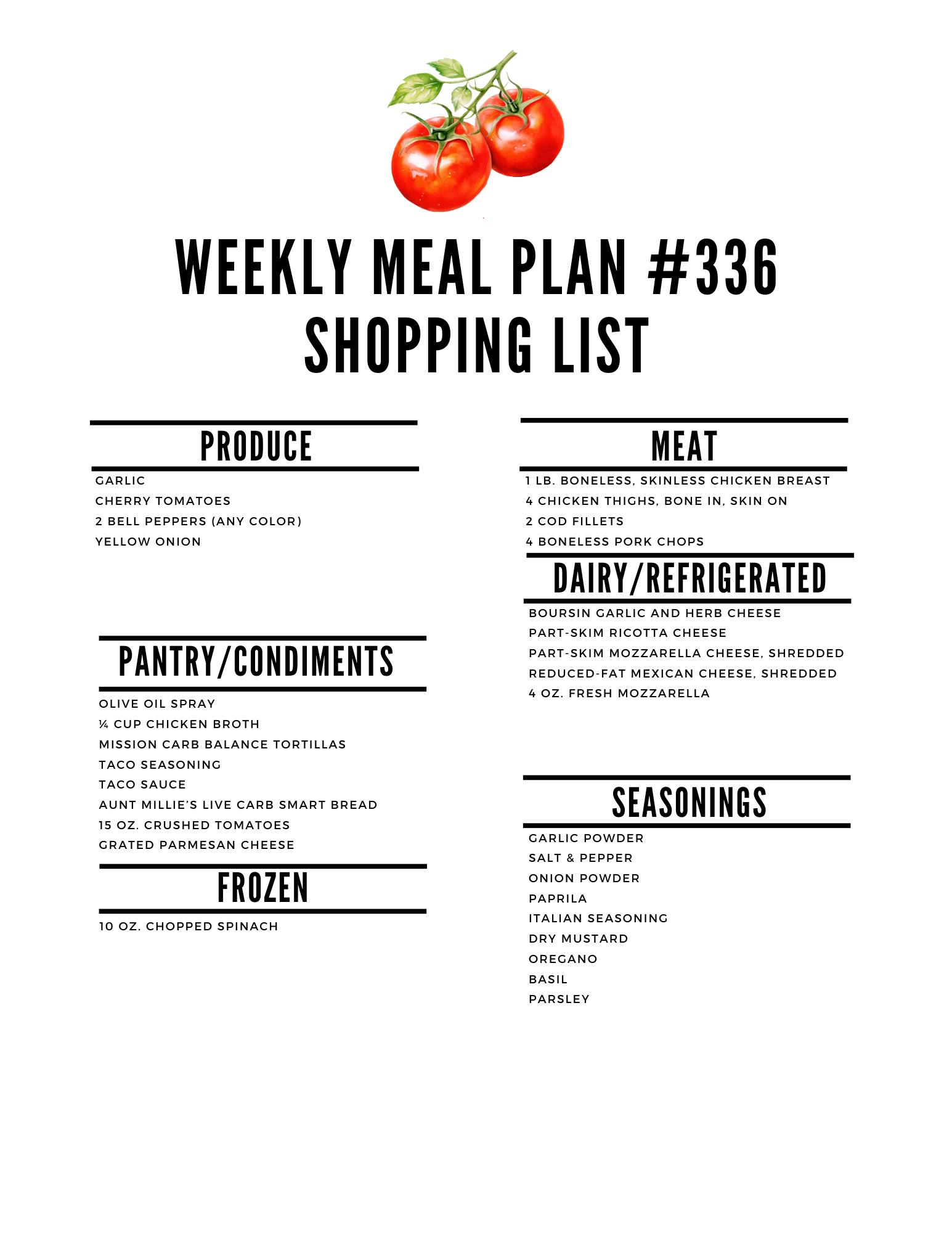 Weekly Meal Plan #336 (Low Carb and Weight Watchers Friendly)