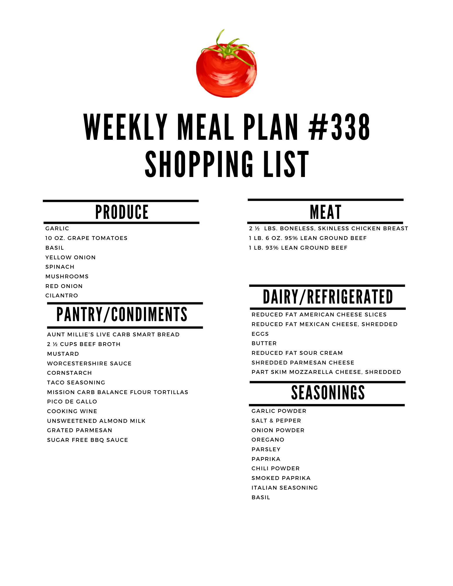 Here is the printable shopping list: