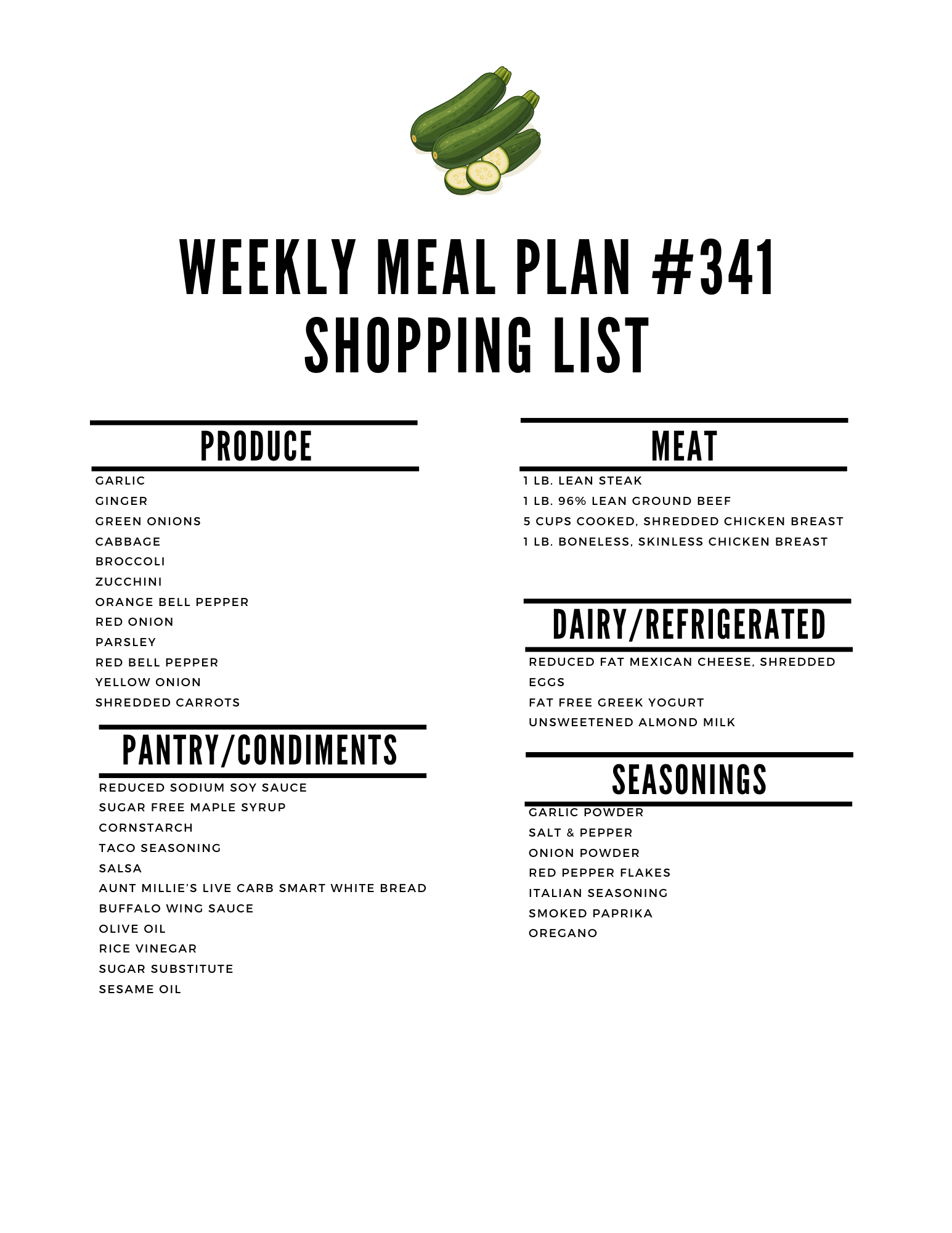 Weekly Meal Plan #341 (Low Carb and Weight Watchers Friendly)