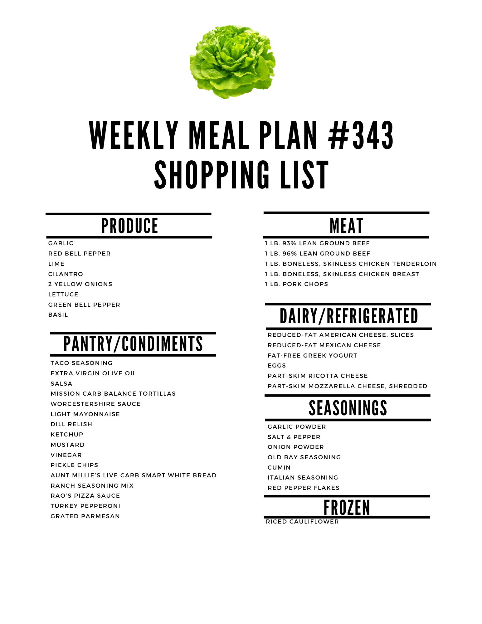 Weekly Meal Plan #343 (Low Carb and Weight Watchers Friendly)