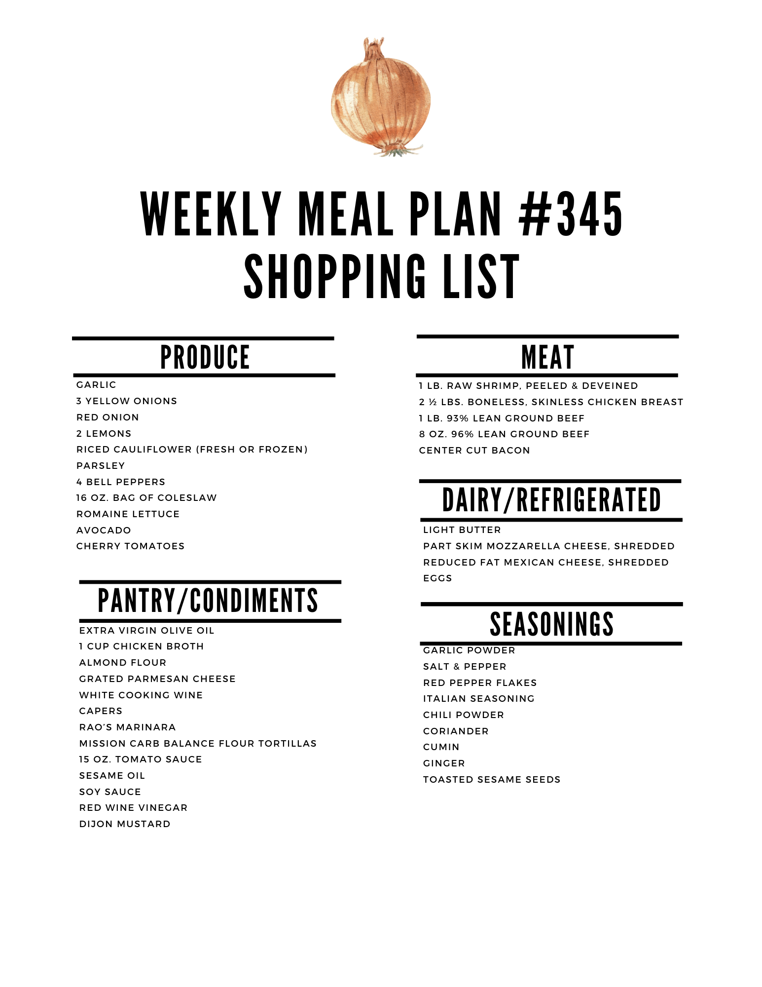 Weekly Meal Plan #345 (Low Carb and Weight Watchers Friendly)