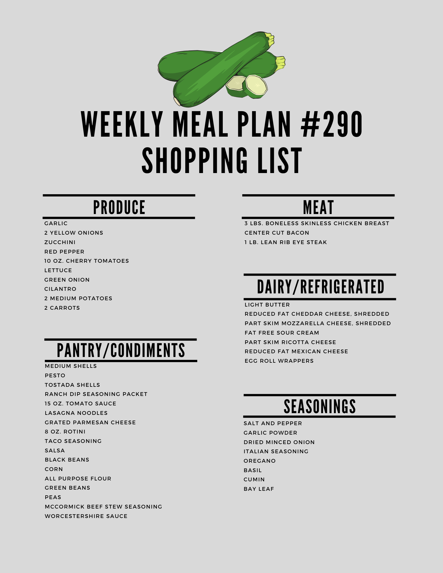 The meal plan below includes six dinner recipes for the week. I left one day open for dining out.