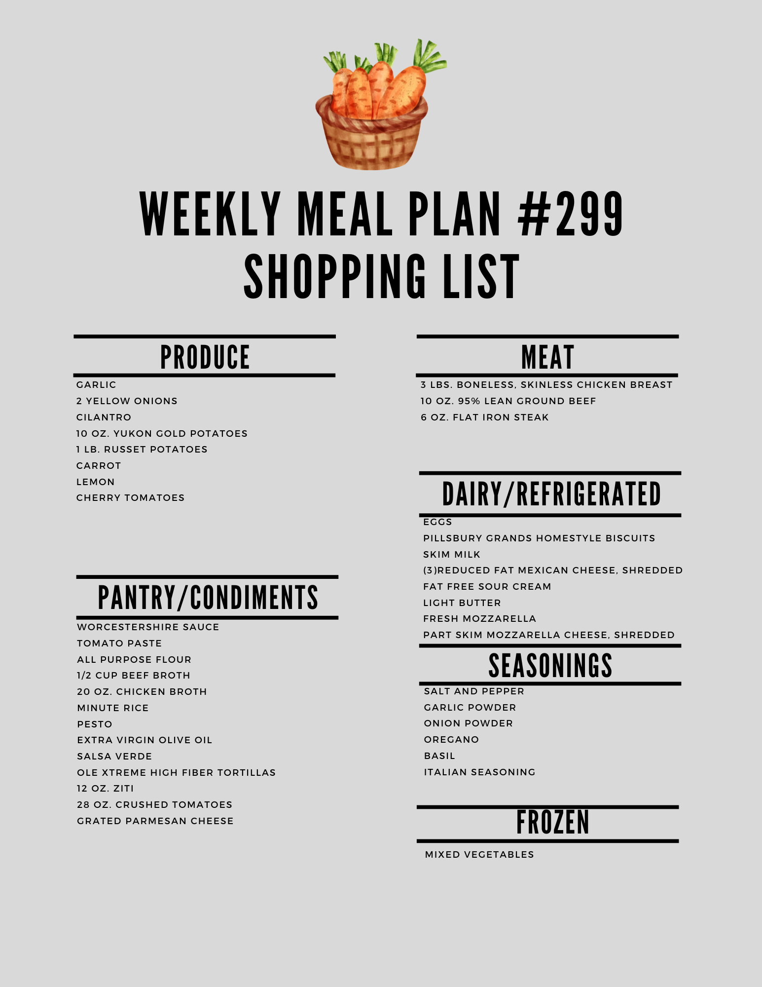 The meal plan below includes six dinner recipes for the week. I left one day open for dining out.