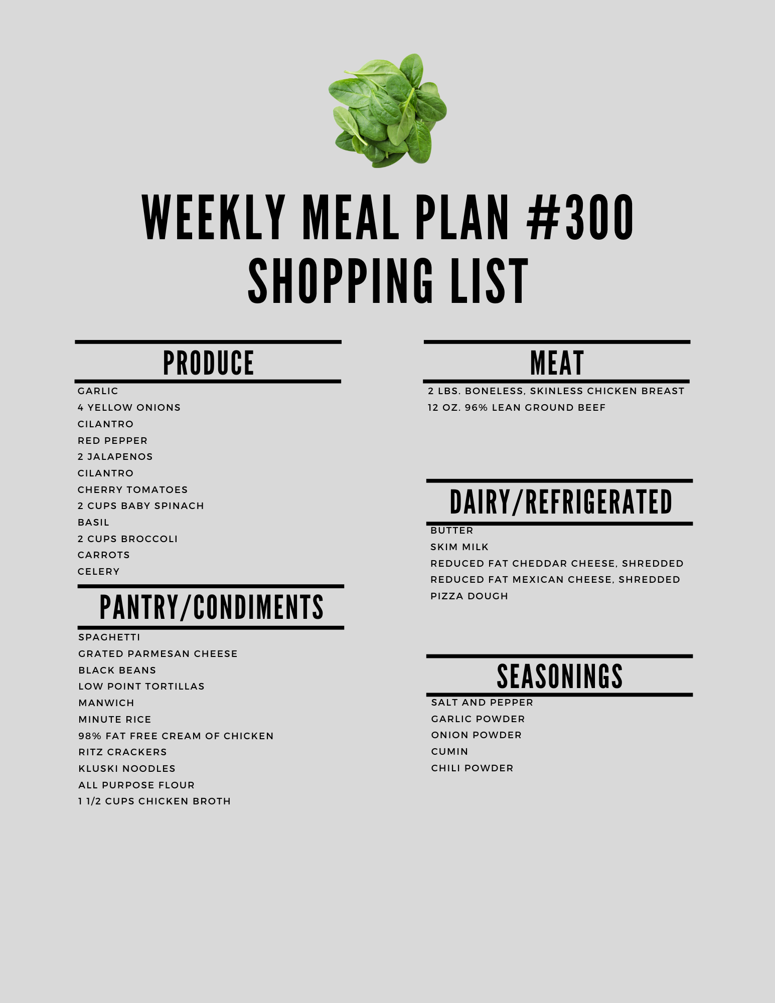 Here is the printable shopping list: