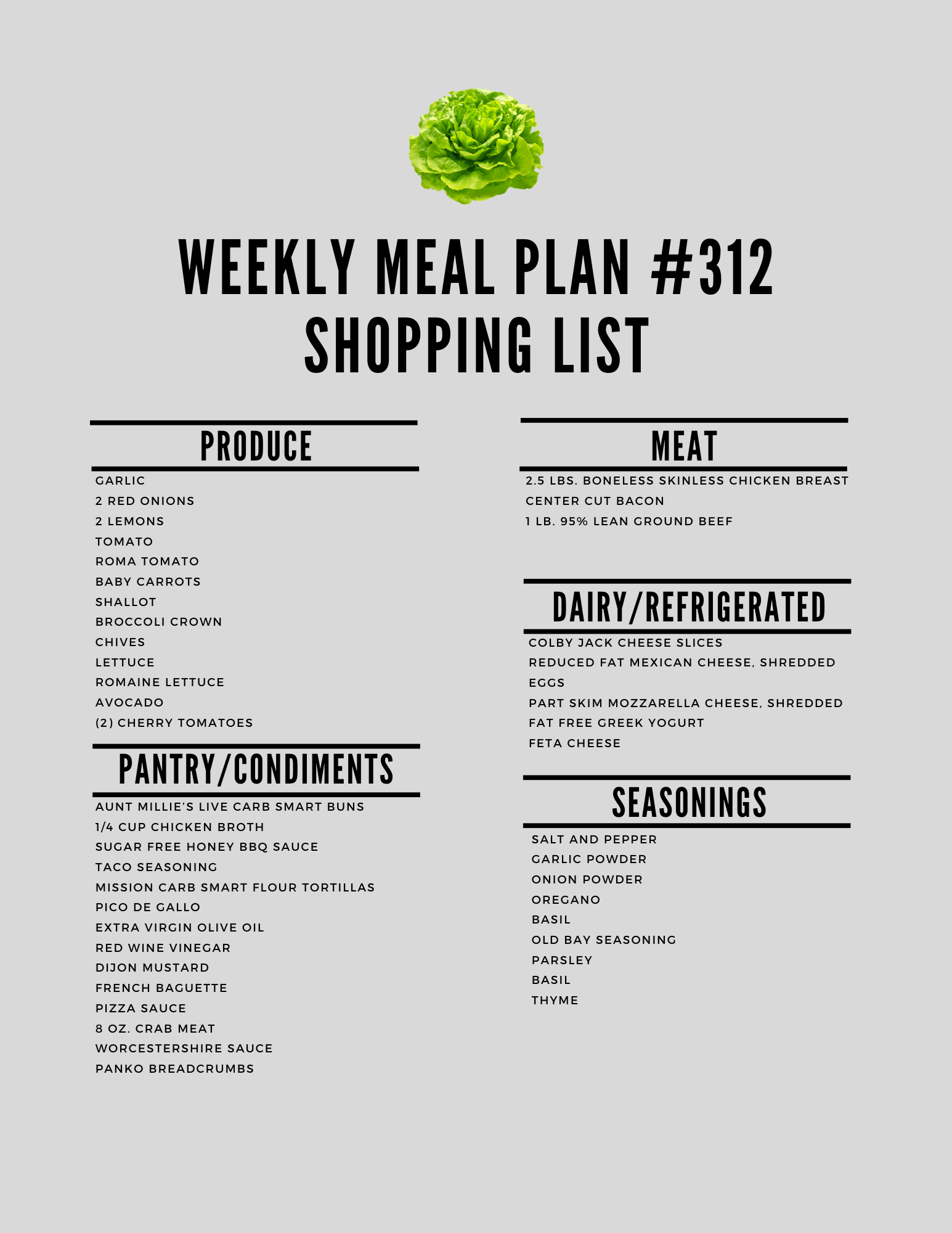 The meal plan below includes six dinner recipes for the week. I left one day open for dining out.