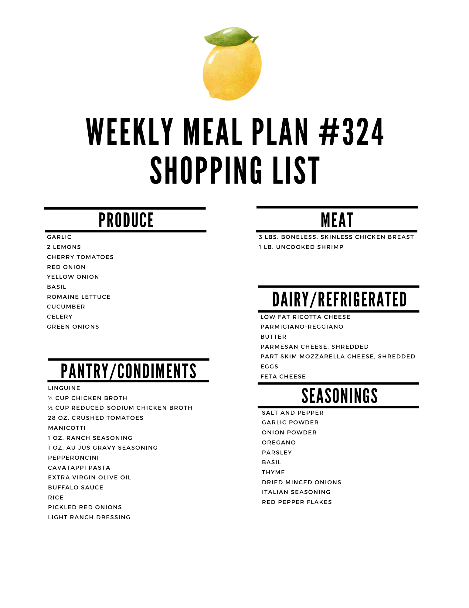 The meal plan below includes six dinner recipes for the week. I left one day open for dining out.