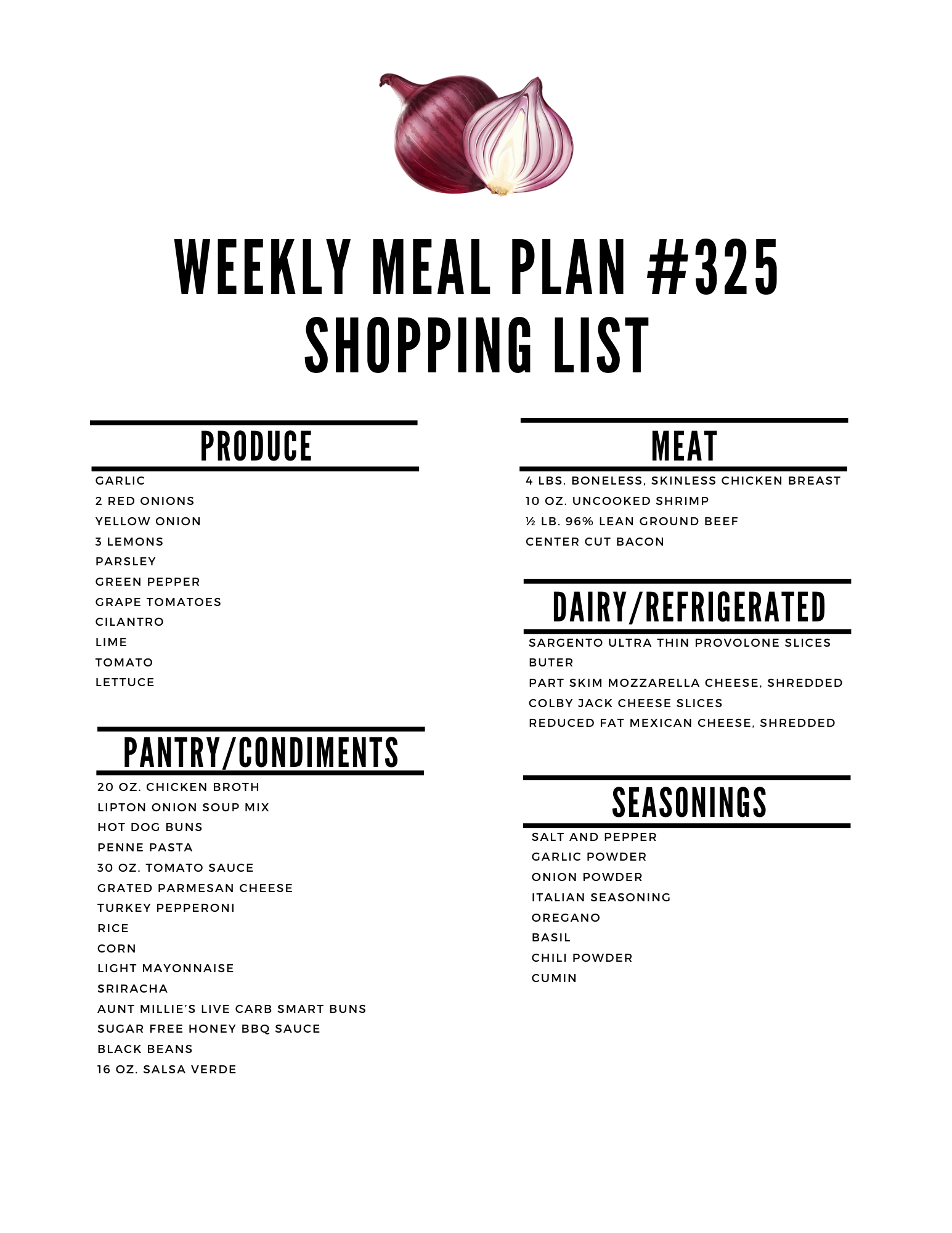 The meal plan below includes six dinner recipes for the week. I left one day open for dining out.