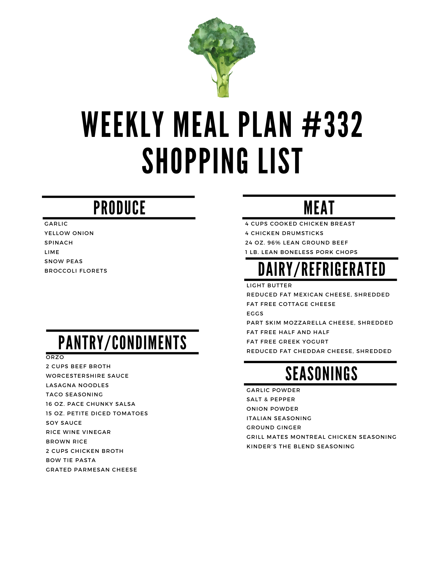 The meal plan below includes six dinner recipes for the week. I left one day open for dining out.