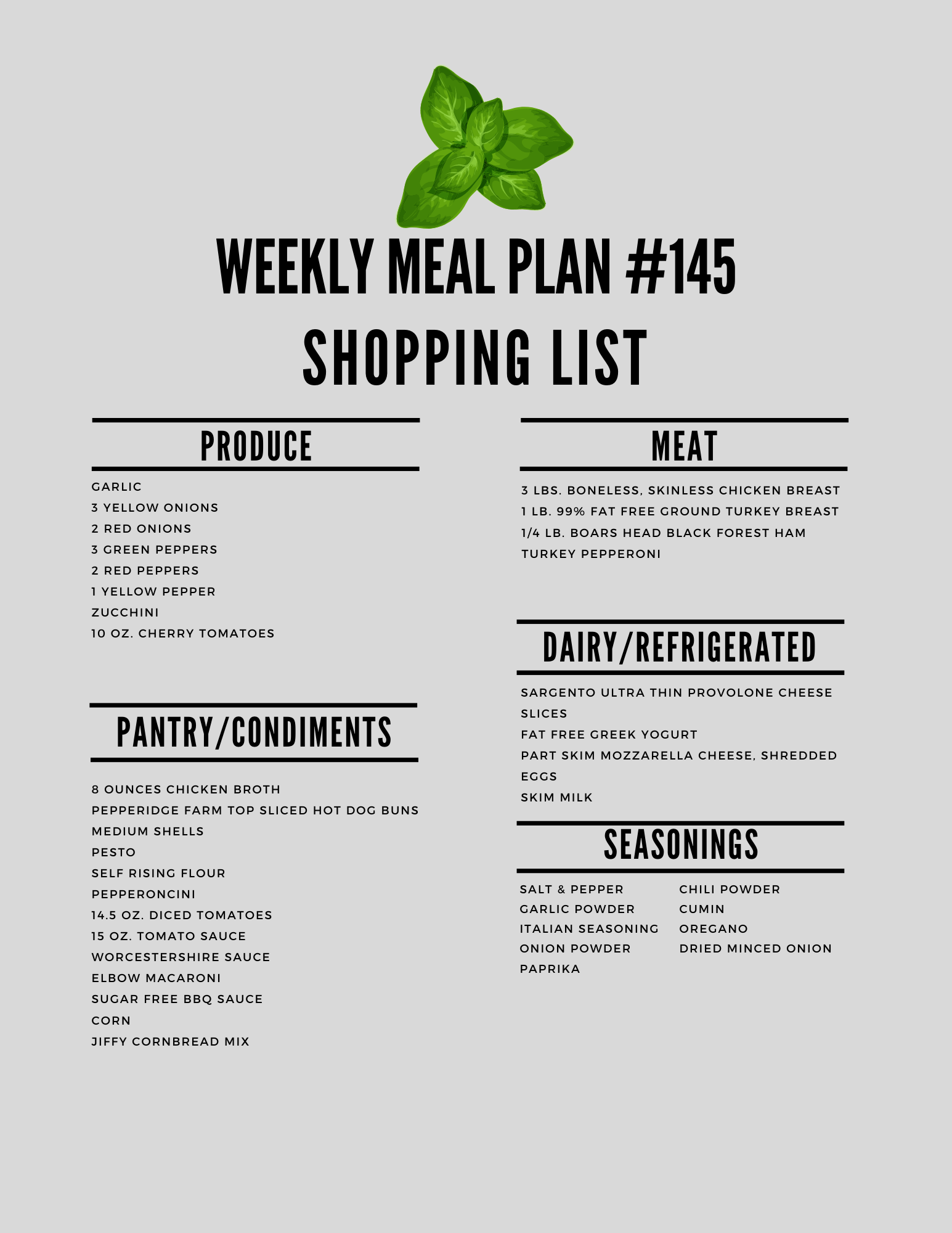 This is the first meal plan of the new year, week #145. If you’re looking for more meal plans you can go here to see the other 144 weeks.