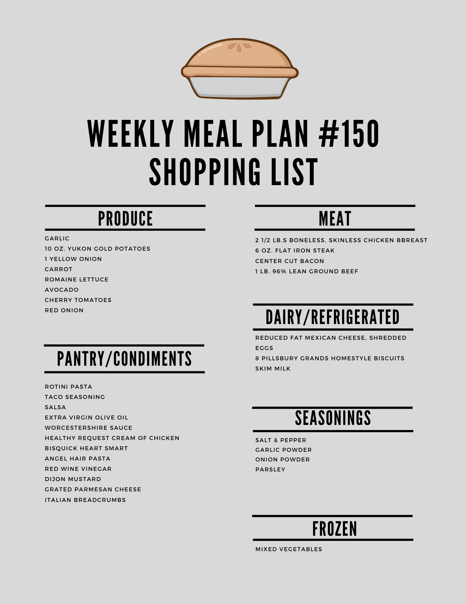 It’s the week #150 meal plan!
