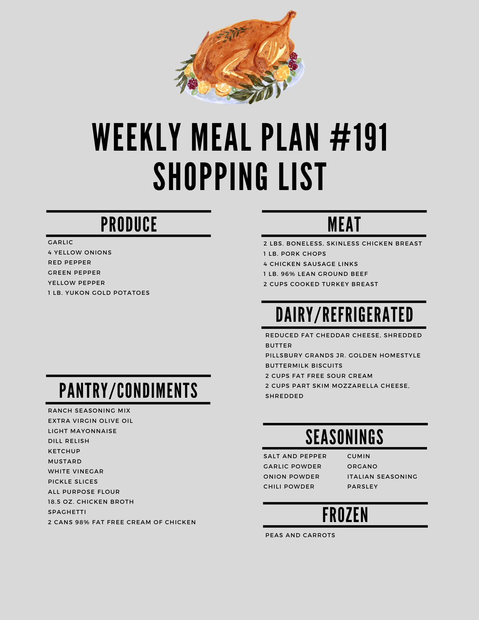 It’s the week #191 meal plan!
