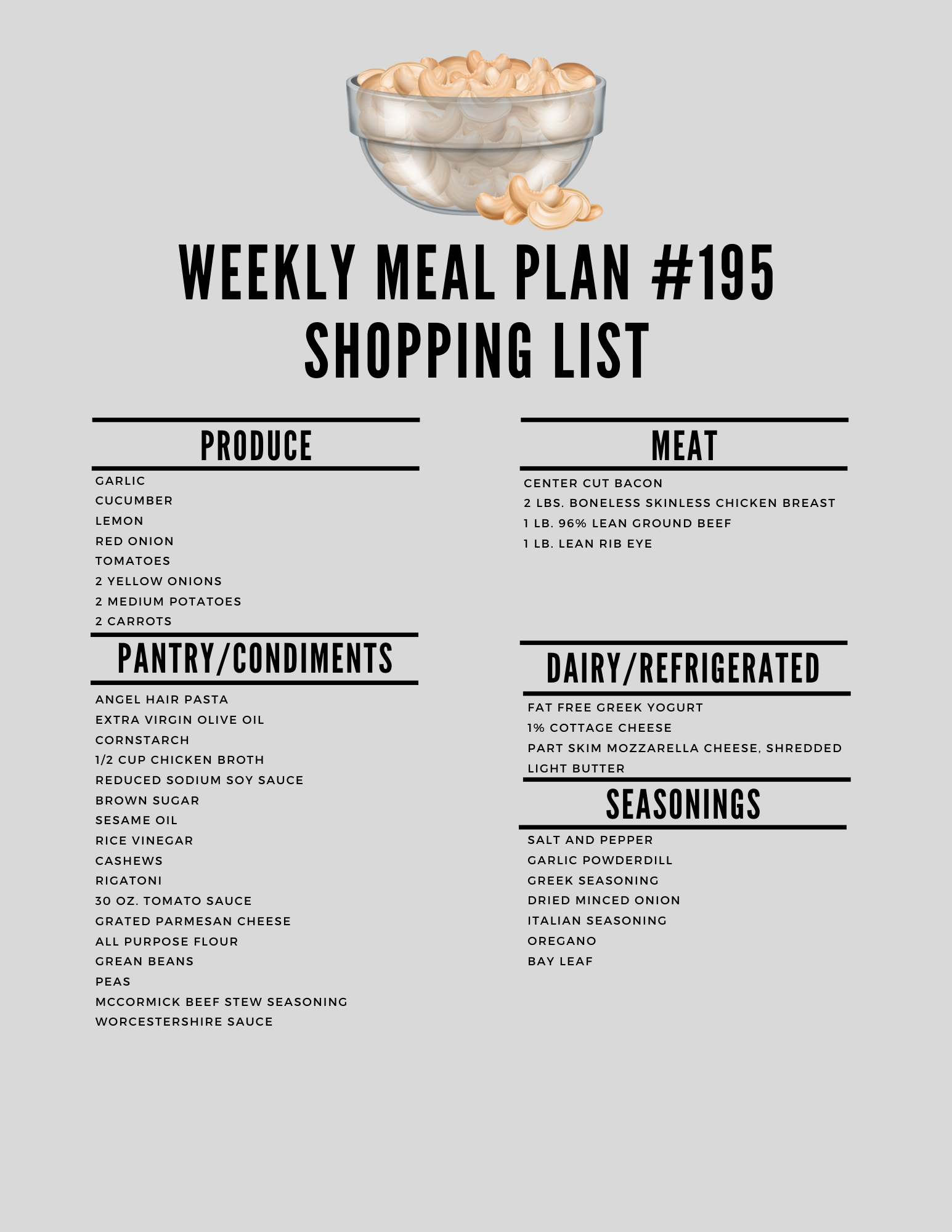 It’s the week #195 meal plan!