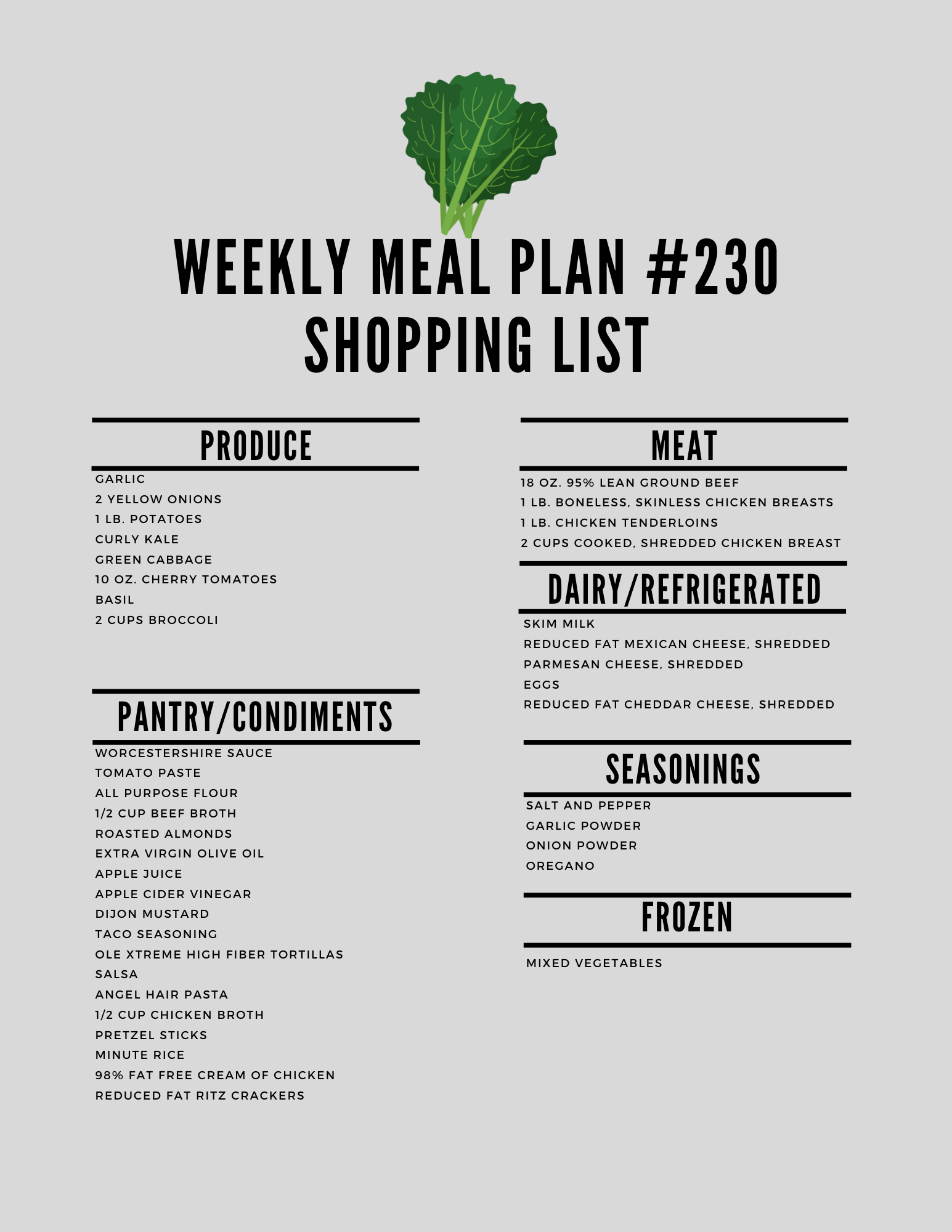 It’s the week #230 meal plan!